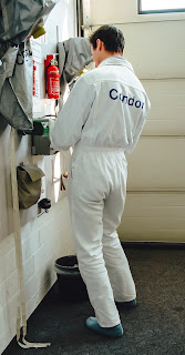 Frank hatte eine Stimme, die nicht laut werden musste, um ernst zu sein. Er ließ uns üben, bis der Körper schneller reagierte als die Angst: Feuer im Simulator, Rauch, „Dangerous Goods“, Deeskalation, Fesseln, klare Worte, klare Handgriffe. Kein Spektakel, sondern Realismus. Und doch: Mitten in all der Strenge konnte er uns zum Lachen bringen, ohne die Bedeutung zu verwässern. Einmal setzte Mel die Rauchschutzhaube auf – Zulassung: zehn Minuten. Frank ließ sie fünfunddreißig laufen. Wir beobachteten, wie ihr Gesicht unter der Haube erst rosig, dann leicht grün wurde, und während wir schon Tränen lachten, blieb sein Blick ruhig: „Merkt euch den Druck. Merkt euch die Zeit. Und merkt euch, dass ihr es könnt.“ Das war Frank: Er führte uns vom einen Extrem ins andere – immer sicher, immer klar – und am Ende stand nicht Panik, sondern Widerstandskraft.