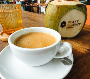 Ich brauchte erstmal Frühstückskaffee. Und ja – diesmal habe ich mir den Luxus gegönnt und tatsächlich im Hotel gefrühstückt. Das Buffet war… keine Frage… exklusiv. Es war lecker. Es war schön. Es war „High Level“. Aber es war nicht das, was ich mit Ko Samui verbinde. Nicht das, was mein Herz sucht, wenn ich in Thailand bin.