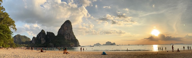 West Railay ist die Postkarte: breiter Strand, weicher Sand, Licht, das am Nachmittag langsam goldener wird. Am Abend legt sich eine Stimmung über alles, als würde jemand einen warmen Stoff über die Welt ziehen. Hier merkst du: Der Tag hat Zeit. Und du hast sie plötzlich auch. Ich hab mich dabei erwischt, wie ich einfach nur da saß – ohne Ziel. Ohne Plan. Nur schauen. Und ehrlich: Das passiert mir nicht oft.