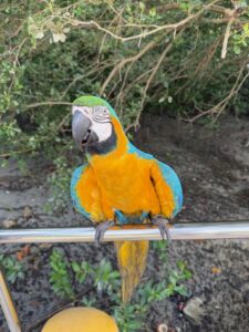 Und dann diese Aras – ausgesetzte Papageien, die vor Ort leben, manchmal Touristen erschrecken und gleichzeitig so verspielt wirken, dass du grinsen musst. Es ist malerisch. Fast kitschig. Und ich musste mich wirklich kneifen, um zu glauben, dass ich hier sitze.