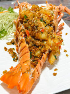 Und wenn Bangkok abends ein Herz hat, dann schlägt es für mich in Chinatown. Yaowarat Road – mein Lieblingsmarkt, mein Lieblingschaos, mein Lieblings-„Ich esse nur kurz was“ und lande dann drei Stunden später irgendwo zwischen Neon, Rauch, Musik und einer Tüte irgendwas Süßem, das ich nicht identifizieren kann. Ich war natürlich wieder mehrmals dort. Und ja… ich hab wieder Lobster gegessen. Weil ich bin eben ich. Manche Menschen kaufen Souvenirs – ich esse Meeresfrüchte mitten auf der Straße und fühle mich dabei wie im Film.