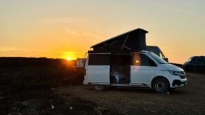 Ja… weiß ich auch nicht. Aber mein Körper, anfänglich dachte ich es war auf meine Panikattacken zurückzuführen, wusste es. Im Bulli ist alles nah. Alles greifbar. Nichts ist zu groß, nichts ist zu weit weg. Du hörst den Regen anders. Den Wind anders. Die Nacht anders. Und irgendwann fragte ich mich nicht mehr, warum ich da draußen schlafe. Ich fragte mich nur noch, wie ich es so lange im Haus ausgehalten habe. Und dann wurde aus einer Nacht zwei. Aus zwei wurden vier. Und irgendwann war es so normal, dass ich gar nicht mehr erklären musste, warum ich wieder im Van schlafe, obwohl mein Haus nur ein paar Meter daneben steht.